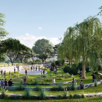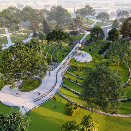 - Eco Gateway – A re-imagined southern entrance that welcomes visitors with rain gardens, trees, and permeable pavements.